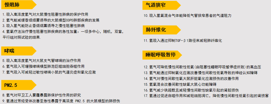 过敏性鼻炎、AECOPD(慢阻肺急性发作)、稳定期慢阻肺、重度哮喘、支气管扩张、睡眠呼吸暂停综合征、尘肺、大气污染项目等。