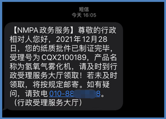 2021年12月,氢氧医学迎来里程碑事件!国家药监局向潓美医疗相关人员发来确认短信,潓美氢氧气雾化机注册变更申请获得国家药监局审批通过!