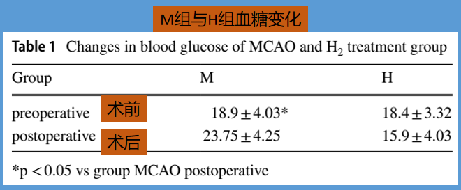 研究者们使用氢氧吸入的方法,测量了大脑中动脉阻塞(“middle cerebral artery occlusion”,缩写为MCAO,即”脑卒中“)前后的血糖水平、48小时脑水肿和梗死体积,以及体重、存活率和神经功能。同时,也测量了TLR4、NF-κB p65和炎症因子的水平。