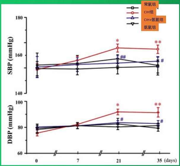 除此以外该实验中和测量了氢氧混合吸入改善心脏功能等,各指标均表明氢氧混合吸入的积极作用,氢氧的这类积极作用降低血压、改善睡眠障碍模型健康状况,同时起到改善睡眠的作用,体现了氢氧医学光谱的作用机制和广阔的应用空间。