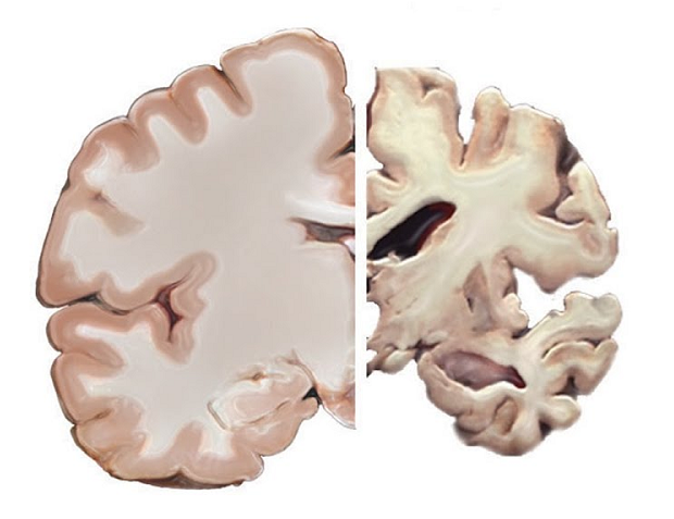 健康大脑(左)和阿兹海默症患者大脑对比