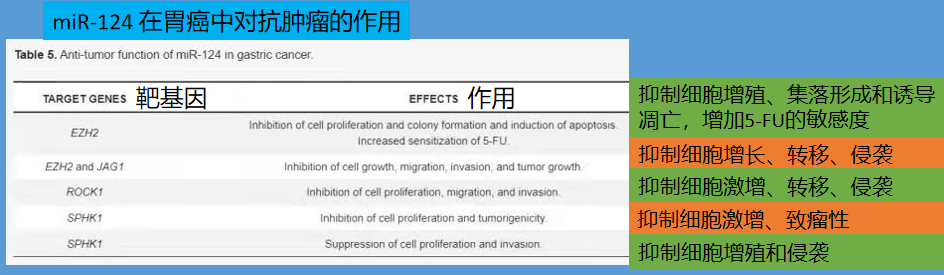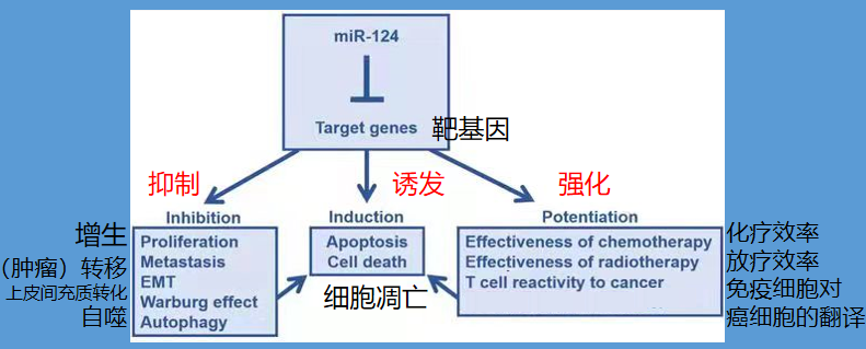 可以看到,miRNA是一种抑制癌症细胞的RNA,可以抑制癌症转移、增生,诱发癌症细胞凋亡、增强放化疗效率