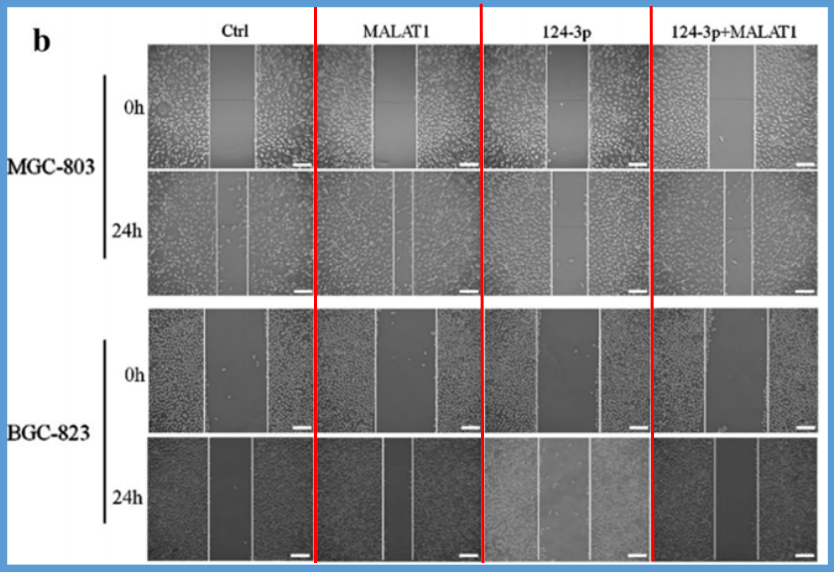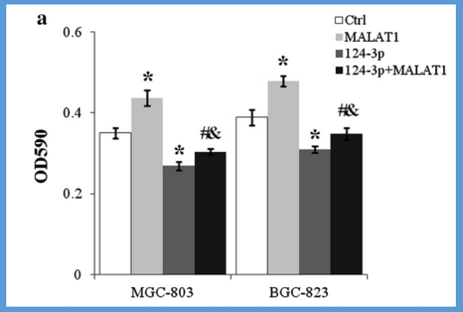 其中,本次实验涉及的IncRNA MALAT1已经被证明可促进癌细胞的增殖和迁移,上皮-间质转化和多种癌症类型的转移,可以增强胃癌细胞的干性、增殖、迁移、侵袭和耐药性。[10]