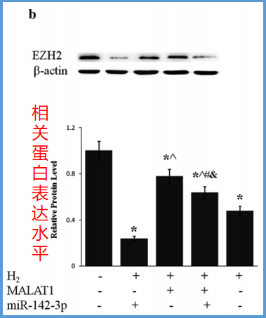又因为H2可以上调miR-124,H2环境下,EZH2lncRNAMALAT1的表达都被抑制。