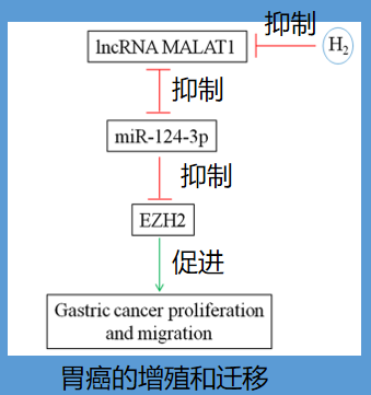 科学家还发现,氢气可以显著抑制胃癌细胞MGC-823中lncRNA MALAT1和转录因子EZH2的表达,同时上调miR-124-3p表达。