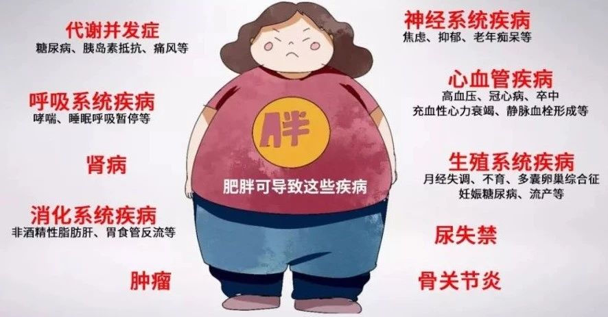 除癌症以外,肥胖还会引起很多其他疾病,如下图所示: