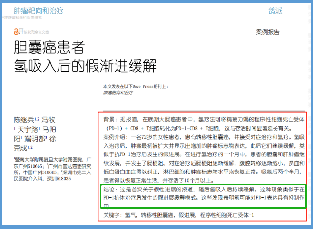 ①文章名称:《氢气疗法可引起转移性胆囊癌缩小:病例报告》