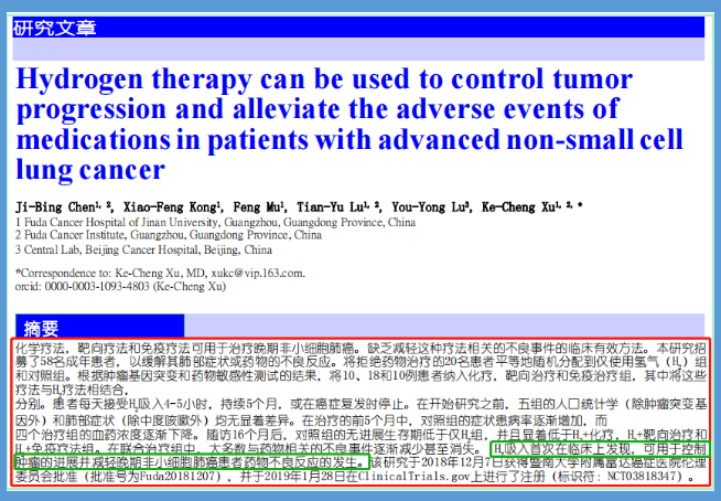 ②文章名称:《H2干预抑制非小细胞肺癌生长的作用及其机制研究》