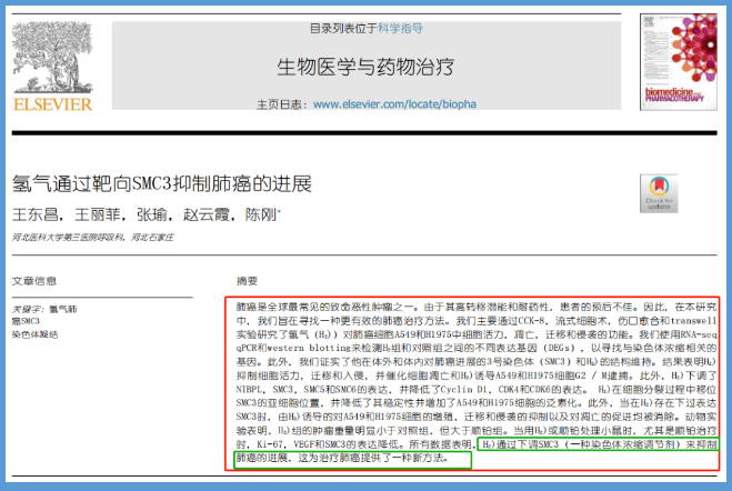 ④文章名称:《氢气通过靶向SMC3抑制肺癌进展》