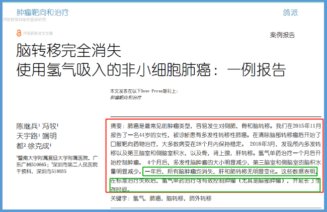 ⑤文章名称:《脑转移完全消失:使用氢气吸入的非小细胞肺癌报告》