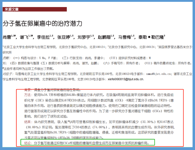 文章名称:《氢分子在卵巢癌中的治疗潜力》