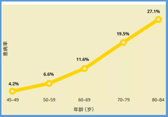 根据发表在《柳叶刀全球卫生》上的一篇分析评估:在全球范围内,60岁以上AMD发病率高达11.6%,80岁以上的老人发病率高达27.1%。这也意味着:每9个六十多的老人中,就有1个患有此病,每4个八十多的老人,就有1位老人患有此病。