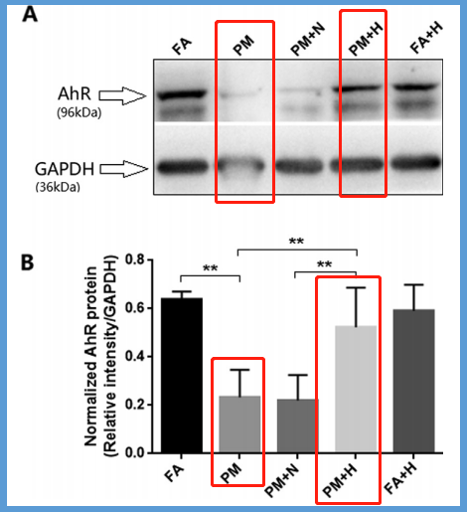 上图可知,PM2.5会导致AhR受体的表达下降,再给予氢氧气治疗之后,AhR受体的表达回到正常,免疫力回归正常。