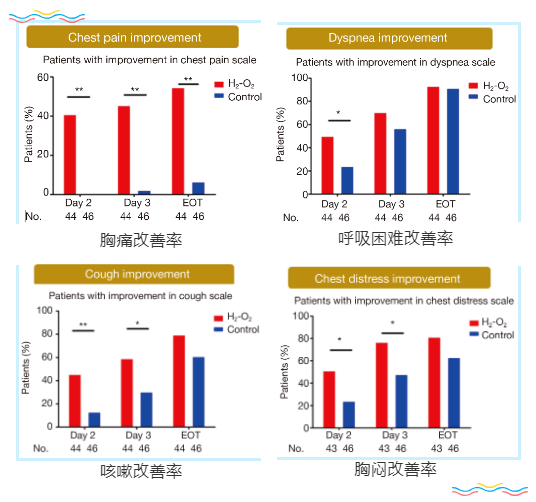 但是缓解的时间一般也很难以达到这么快速。另外,既往的治疗手段主要还是高度依赖于药物,所以我们在基于前期,就是氦氧混合气治疗的效果得到启发了以后,又成功研发了氢氧混合仪基于前期的研究结果,确实能够进一步验证了我们在对于这些慢性气道疾病急性加重患者里,也是有让人非常兴奋的治疗效应。