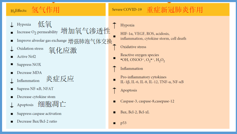 下面重点谈一下,为什么在慢阻肺治疗实验中,氢氧的效果要好于纯氧。这其中的差别,主要是患者同时吸入了氢气,发挥了抗氧化、抗炎的作用。