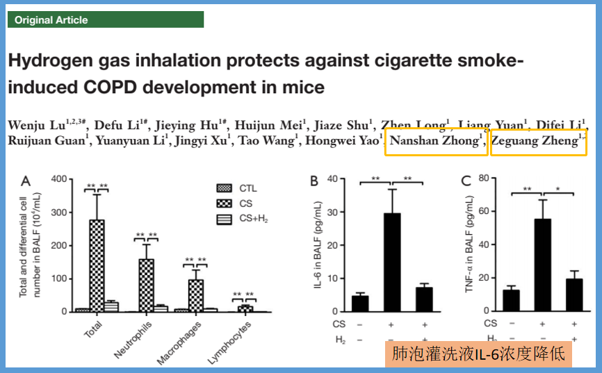 因此,钟南山院士团队很早就着手研究氢氧混合吸入对抗包括慢阻肺在内多种呼吸类疾病的作用机制,并且发表了多篇研究论文。下面就为大家具体介绍一下!
